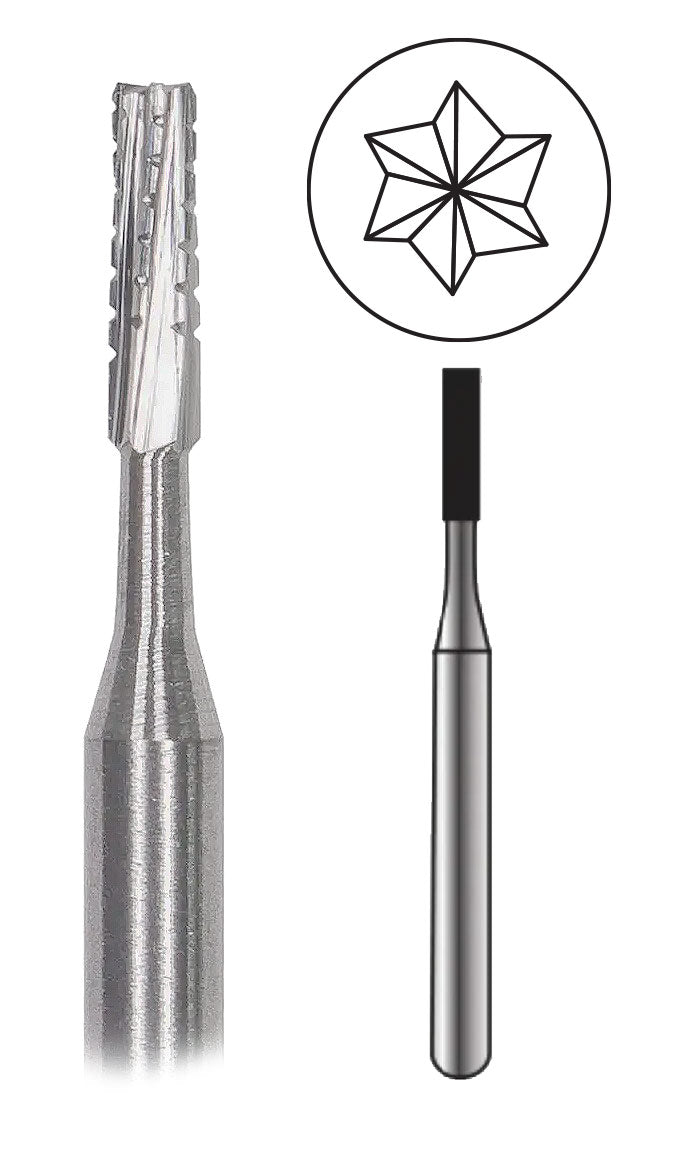 Designed for creating parallel sides, straight walls and flat floor, ideal for periphery contouring. Dome Ends create round shaped internal line angles. Crosscut Ends provide efficient cutting and improved tactile experience by low speed cutting.