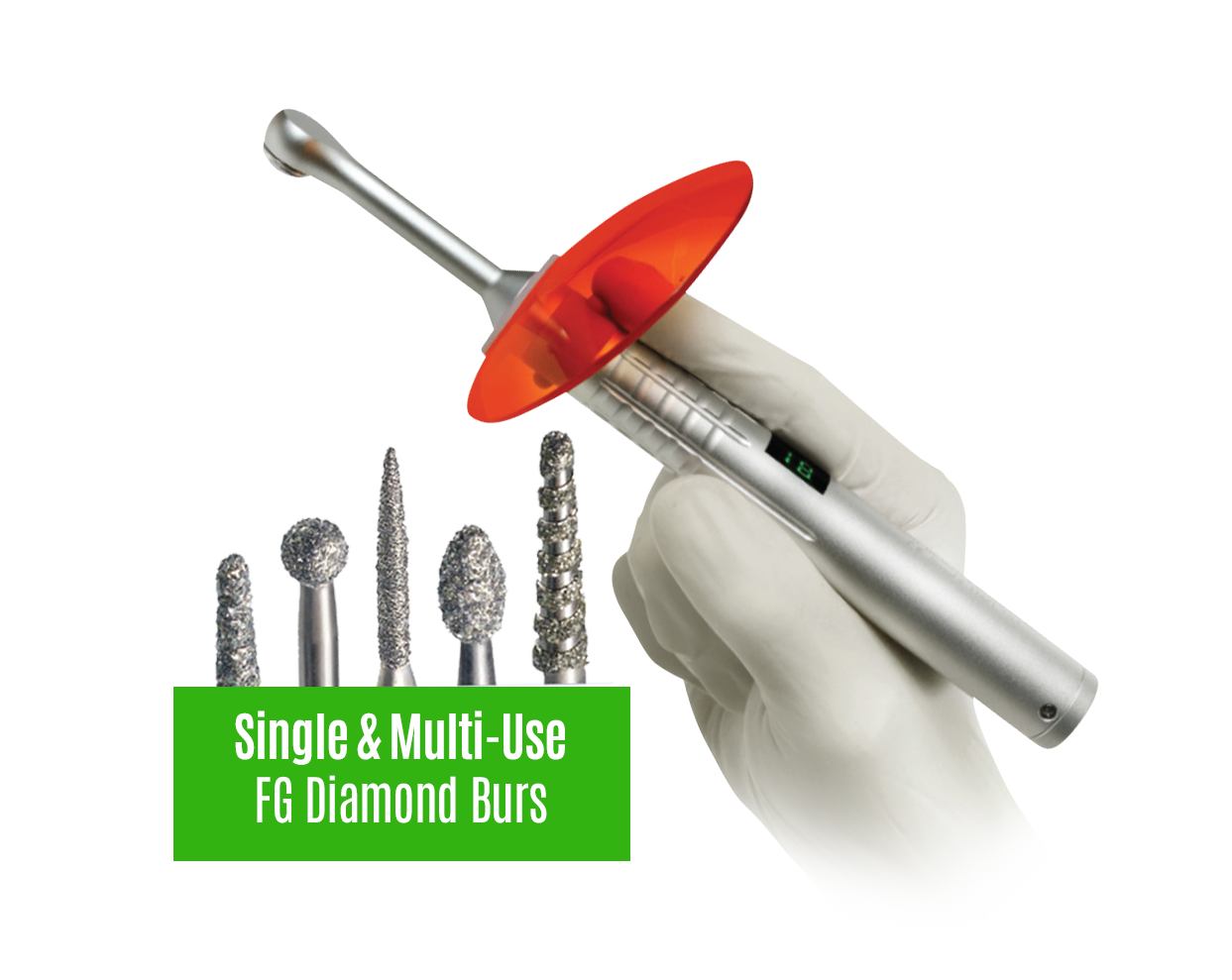 Buy any curing light and get two 25 packs of regular and large head diamond burs.