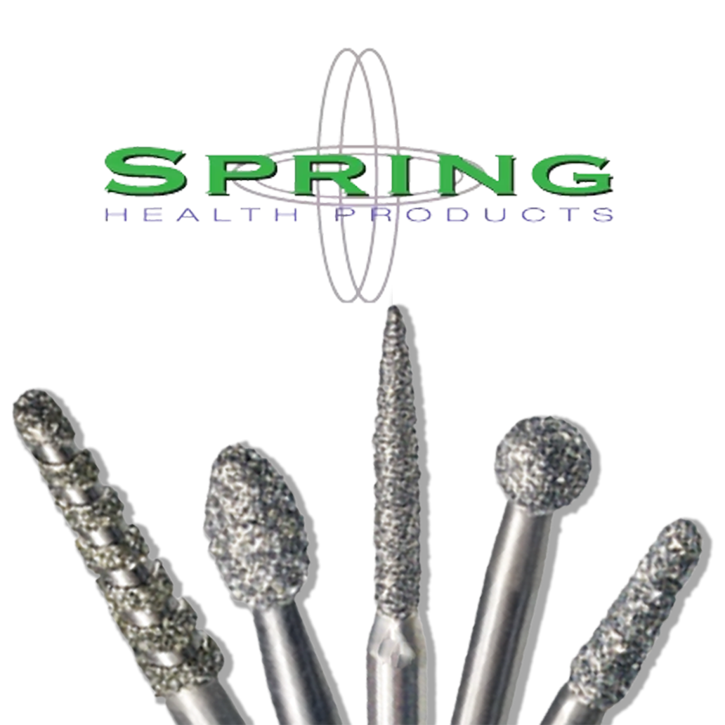 5 piece kit includes Spring Health Product's diamond burs 772.8F, 250.8F, 285.5F, 125F, 703.8F