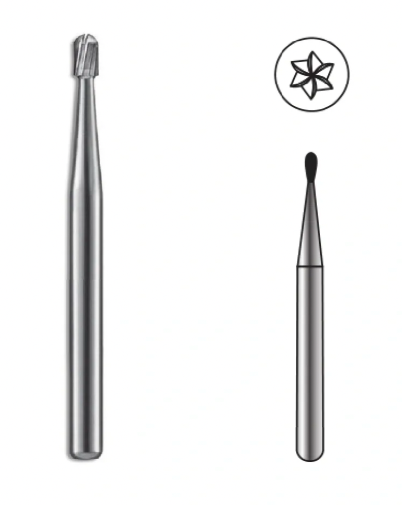 Designed for initial entry, shaping cavity preparations, extending preparation walls, and creating depth marks for endodontic preparation. Pears provide spherical internal corners and mechanical retention.