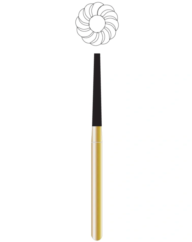 Taper finishing ends are designed for trimming on the cervial portion of any tooth. Straight finishing ends create straight and smooth margins. Inverted taper ends are ideal for establishing a smooth surface on converging walls.